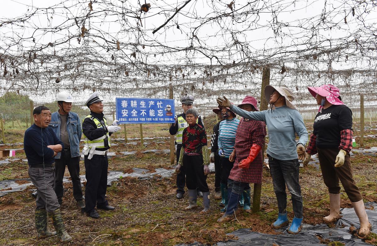 4月10日,安徽省宿松縣公安局交管大隊(duì)民警深入公路沿線田間地頭,進(jìn)行春耕生產(chǎn)交通安全提示,守護(hù)村民出行安全。