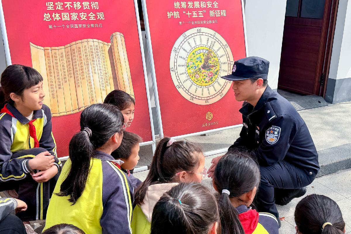 4月15日,上海市公安局崇明分局豎新派出所民警走進(jìn)轄區(qū)紅色教育基地,通過法治宣講、互動問答等形式,為學(xué)生們普及國家安全知識。