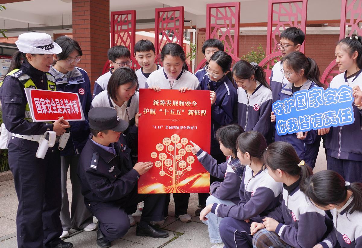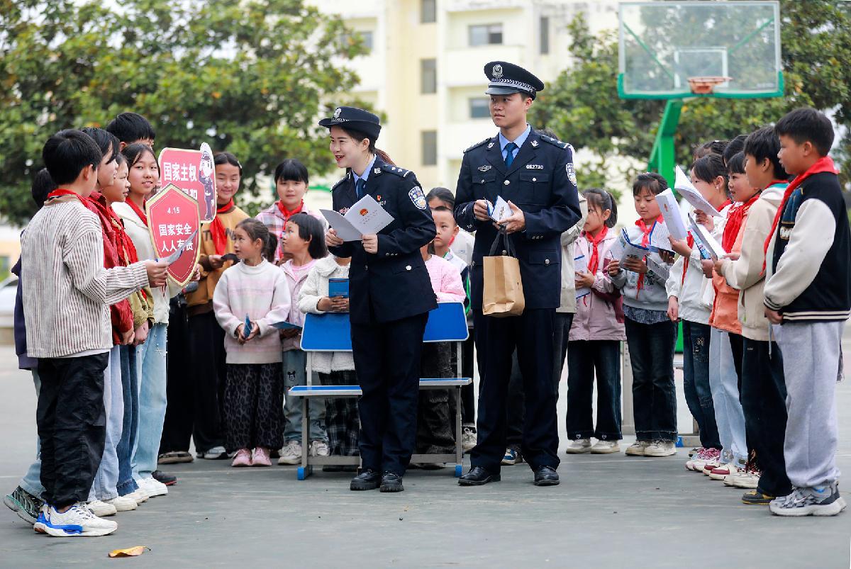 4月15日,在四川省綿陽師范學(xué)院,綿陽市公安局組織民輔警在學(xué)院廣場向?qū)W生講解國家安全相關(guān)知識,增強(qiáng)學(xué)生國家安全意識和素養(yǎng)。
