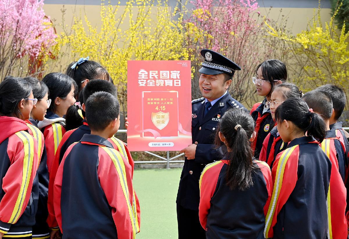 4月14日,甘肅省蘭州市公安局高新分局連搭派出所民警在轄區(qū)學(xué)校開展全民國家安全教育日主題宣傳。