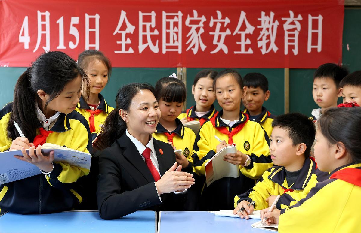 4月14日,河南省汝陽縣人民檢察院干警為城關(guān)鎮(zhèn)第三初級中學(xué)學(xué)生上全民國家安全教育課。