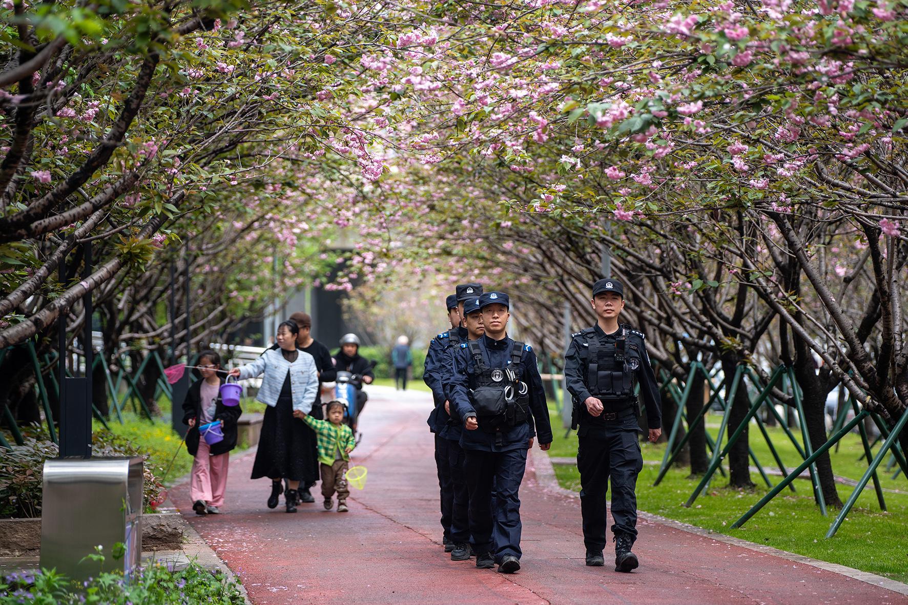 4月11日,山東省煙臺市公安局在牟平區(qū)龍湖櫻花大道舉辦“齊魯守護·平安相伴”春日游園會,現(xiàn)場小朋友積極參與交通安全游戲。