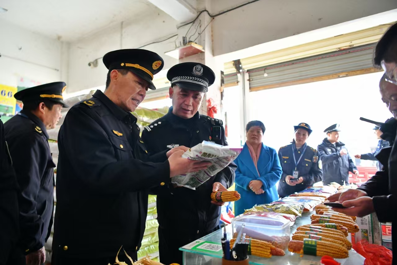 當(dāng)前正值春耕備耕時(shí)期,安徽省阜南縣公安局森林大隊(duì)、縣農(nóng)業(yè)綜合執(zhí)法大隊(duì)聯(lián)合開展種子、化肥和農(nóng)藥等農(nóng)資產(chǎn)品檢查,嚴(yán)防假冒偽劣產(chǎn)品流入市場(chǎng),筑牢春耕生產(chǎn)“第一道防線”。圖為近日阜南縣公安局森林民警聯(lián)合農(nóng)業(yè)執(zhí)法人員在該縣田集鎮(zhèn)一農(nóng)資銷售點(diǎn)檢查農(nóng)資產(chǎn)品。