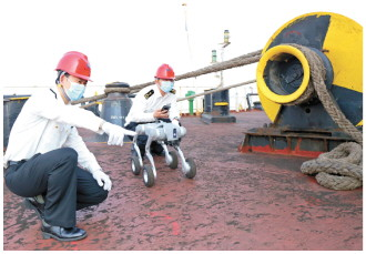 近日,南京海關(guān)所屬揚(yáng)州海關(guān)聯(lián)合杭州宇樹科技有限公司探索輪足式機(jī)器人在入出境船舶智慧查驗(yàn)領(lǐng)域應(yīng)用,并首次上船嘗試開展相關(guān)查驗(yàn)。通過深度融合人工智能與機(jī)器人技術(shù),加快推進(jìn)危化品智能識(shí)別系統(tǒng)與檢疫處理效能評(píng)估體系建設(shè),為實(shí)現(xiàn)海關(guān)業(yè)務(wù)流程優(yōu)化再造、監(jiān)管作業(yè)全面升級(jí)提供更多優(yōu)質(zhì)方案。圖為海關(guān)關(guān)員在船舶甲板測(cè)試“機(jī)器狗”機(jī)動(dòng)性和通過性。