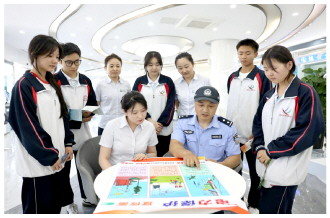 為普及電力設(shè)施保護及用電安全知識,國網(wǎng)新疆電力有限公司昌吉供電公司近日聯(lián)合新疆維吾爾自治區(qū)昌吉市公安局北方南路派出所,在昌吉雪蓮營業(yè)廳為昌吉第四中學學生開展普法宣傳活動,圖為活動現(xiàn)場。 本報通訊員 張桂花 攝