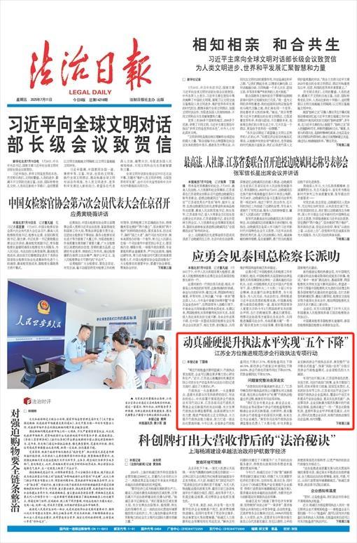 執(zhí)法為民,監(jiān)督為要。江蘇還部署推進省市縣鄉(xiāng)四級全覆蓋行政執(zhí)法協(xié)調(diào)監(jiān)督體系建設(shè),省級、13個設(shè)區(qū)市地方政府全部啟用“行政執(zhí)法協(xié)調(diào)監(jiān)督局”印章,省市縣三級行政執(zhí)法部門設(shè)立法制機構(gòu)(執(zhí)法監(jiān)督機構(gòu))3020個,行政執(zhí)法監(jiān)督隊伍發(fā)展壯大到9073人。創(chuàng)新出臺《行政執(zhí)法協(xié)調(diào)監(jiān)督職責(zé)指導(dǎo)清單(1.0版)》,細化明確12項協(xié)調(diào)監(jiān)督事項31項具體職責(zé),并以此為基礎(chǔ)出臺《行政執(zhí)法監(jiān)督文書示范文本(試行)》,編制18種文書樣式,從實體和程序兩方面實現(xiàn)對行政執(zhí)法工作的全方位、全流程、常態(tài)化、長效化監(jiān)督,讓監(jiān)督的“牙齒”真正“咬合”。