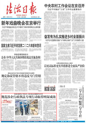 近日,我國(guó)第一部關(guān)于行政執(zhí)法監(jiān)督制度的國(guó)家層面專門立法——《行政執(zhí)法監(jiān)督條例》(以下簡(jiǎn)稱《條例》)公布,自2026年2月1日起施行,標(biāo)志著具有中國(guó)特色的行政執(zhí)法監(jiān)督進(jìn)入全面法治化的新發(fā)展階段。