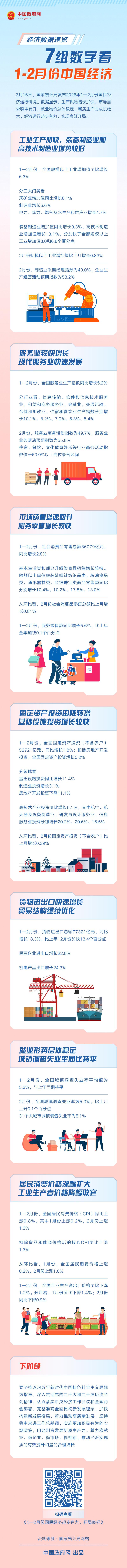 經(jīng)濟(jì)數(shù)據(jù)速覽:7組數(shù)字看1—2月份中國(guó)經(jīng)濟(jì)
