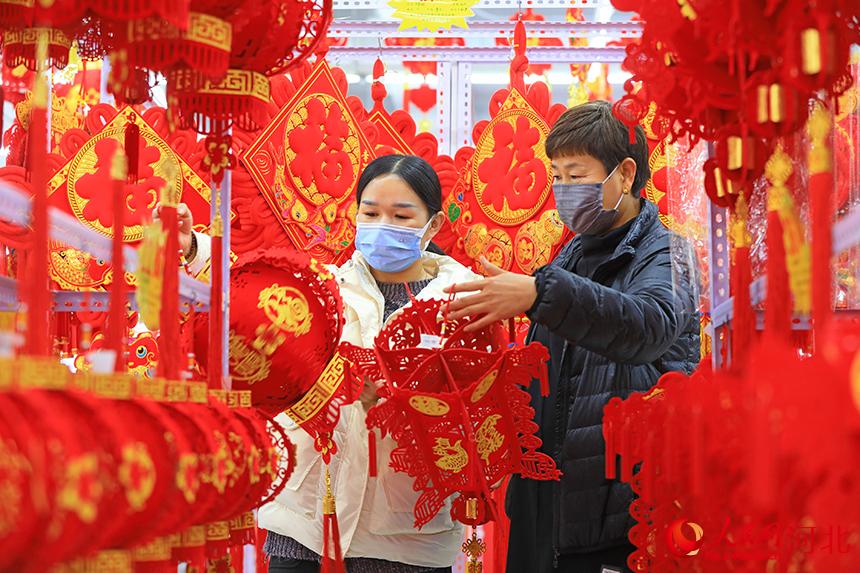 春節(jié)臨近,河北各地賣場(chǎng)里春聯(lián)、福字、紅燈籠、中國(guó)結(jié)、剪紙窗花等多種春節(jié)飾品琳瑯滿目,紅彤彤一大片,令人目不暇接,吸引了不少顧客前往選購(gòu),裝扮美好的虎年春節(jié)。(付兆颯、張永新)