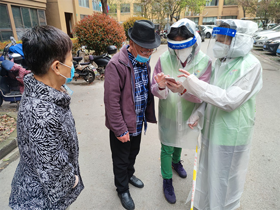 面對緊接而來的樓棟封控、大規(guī)模核酸檢測等一系列緊迫工作,在居民區(qū)黨總支書記黃菊芳的帶領(lǐng)下,全體居委干部認清了形勢、調(diào)整好情緒、立即投入工作。黃菊芳負責統(tǒng)籌全局,與街道各部門支援人員聯(lián)系、協(xié)調(diào)。街道選派機關(guān)骨干人員下沉居委,幫助開展社區(qū)服務和協(xié)調(diào)各項事務。居委干部分工合作,開啟了24小時工作模式,為居民解答疑問、排憂解難,排查小區(qū)封控人員信息,召回人員、登記信息……閉環(huán)管理工作有條不紊地開展著。