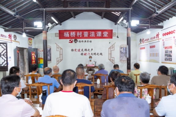 這堂課的主講人是楊橋村“法治帶頭人”劉銀海,娓娓道來的不僅有楊橋的耕讀文化和農作習俗,還有最新的政策、法律。今年以來,楊橋村將本村特色景點與鄉(xiāng)村法治建設相結合,利用“法治帶頭人”“法律明白人”等用村民聽得懂的語言開展法治宣傳、提供法律咨詢、調解矛盾糾紛等,打通了鄉(xiāng)村法治建設的“最后一公里”。