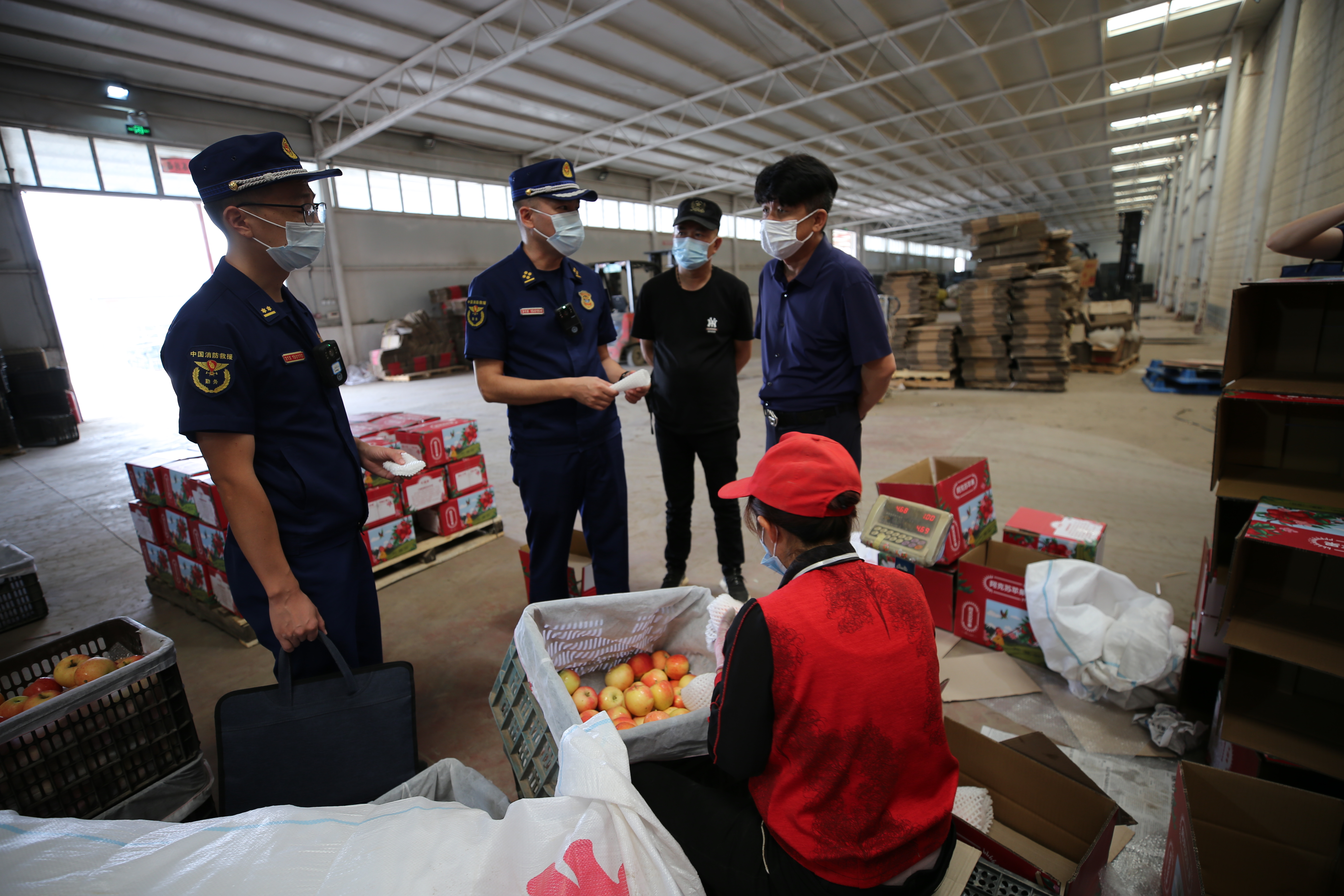 隨著新疆阿克蘇地區(qū)果品成熟,各類涉果企業(yè)也隨之進(jìn)入加工、生產(chǎn)旺季。為切實(shí)消除火災(zāi)隱患,阿克蘇地區(qū)消防救援支隊(duì)聯(lián)合轄區(qū)公安、工商等部門組成聯(lián)合檢查組,開展涉果企業(yè)消防安全專項(xiàng)整治行動(dòng)。圖為8月31日,阿克蘇地區(qū)消防救援支隊(duì)消防監(jiān)督員在轄區(qū)涉果企業(yè)開展消防安全隱患排查。