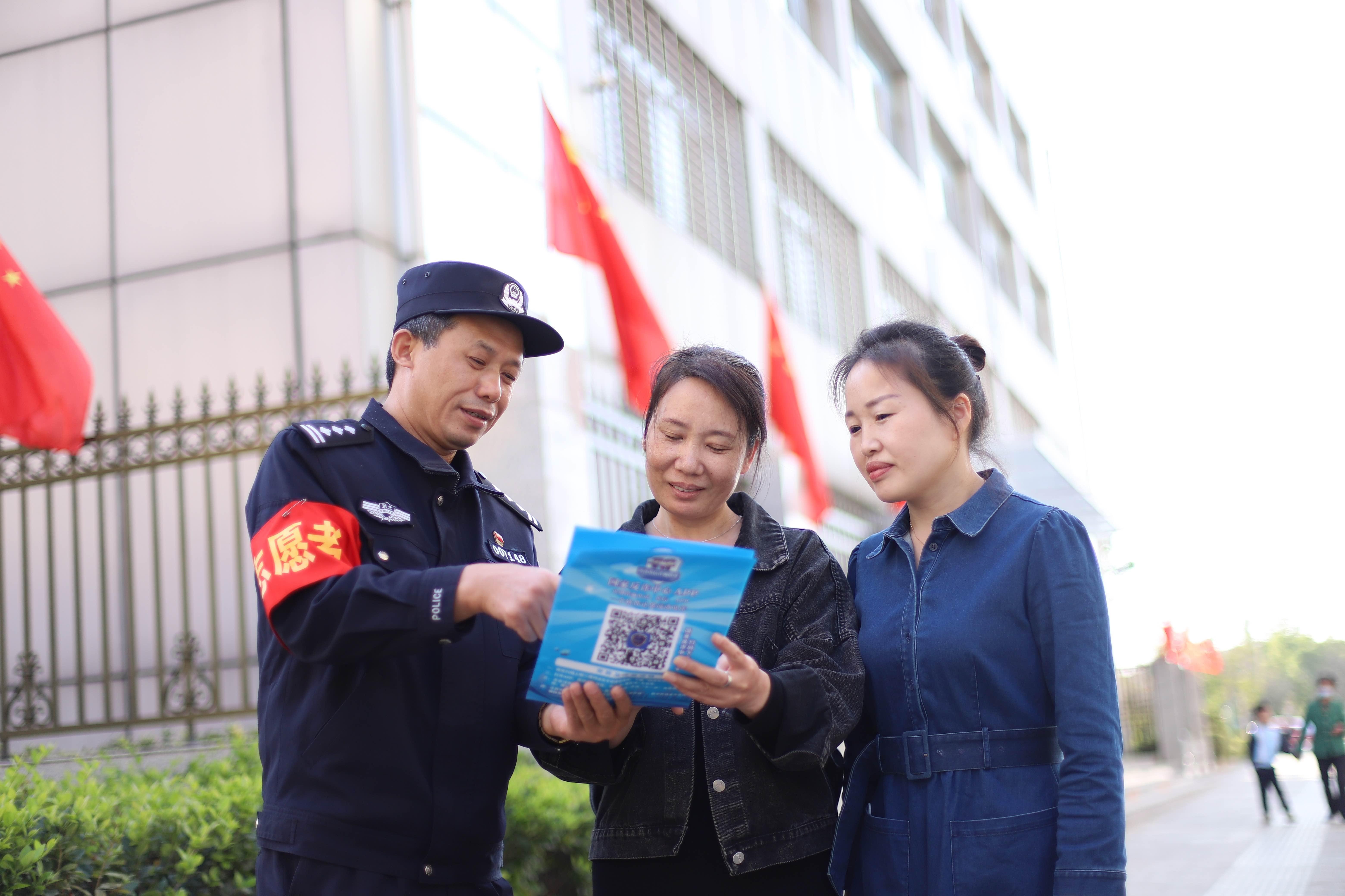 長(zhǎng)安社區(qū)電詐警情曾居高不下,姜亨祝主動(dòng)爭(zhēng)取多方力量支持,開(kāi)展六輪“掃樓”入戶宣傳,“一輪下來(lái)至少一個(gè)月,不落一戶”。姜亨祝每天編發(fā)、轉(zhuǎn)發(fā)防詐騙信息到59個(gè)微信群,對(duì)居民浸入式灌輸防詐知識(shí)。他還將自己編寫(xiě)的反詐提示錄入小喇叭內(nèi),在轄區(qū)開(kāi)展日常巡邏時(shí),沿路播放。天天在群里“打廣告”,有些居民嫌煩,將姜亨?!疤摺背?,后禁不住他反復(fù)做思想工作,又將他拉了進(jìn)去?!胺凑褪琴囋谌豪锊蛔吡恕!彼χf(shuō)。