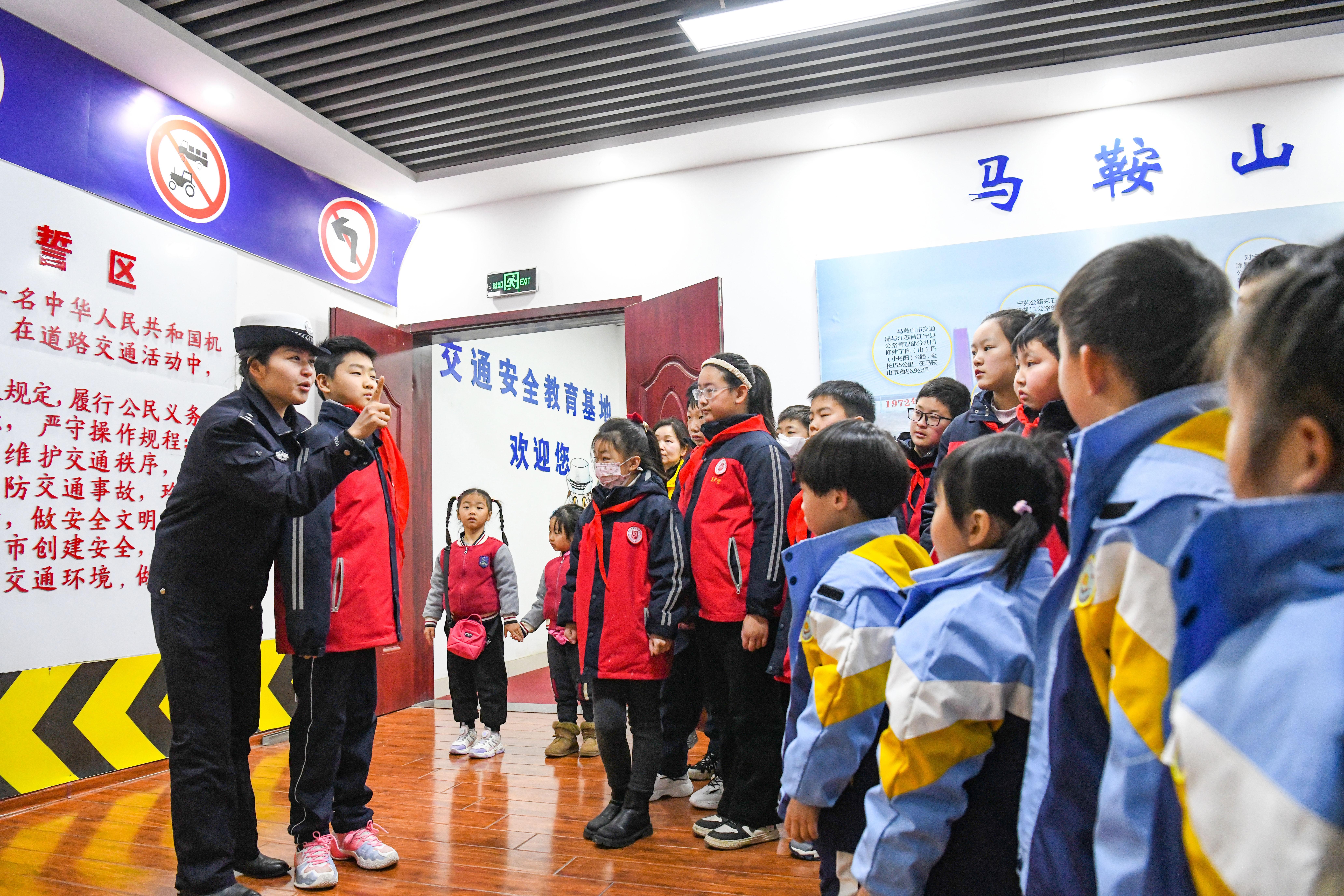 2月15日,安徽省含山縣公安局交管大隊邀請該縣中小學生來到馬鞍山市交通安全教育基地,為學生們帶來一堂“沉浸式”交通安全課。現(xiàn)場,民警利用“模擬交通”智慧課堂,與同學們積極互動,通過模擬駕駛機動車、摩托車,對走錯道、未按交警手勢通行、搶燈等違法行為及時糾正,引導孩子們自覺遵守交通法規(guī),牢固樹立安全意識。圖為民警為學生講解交通安全知識。 本報通訊員 馮善軍 攝