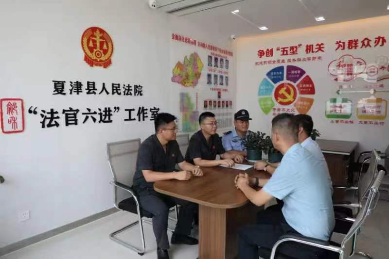 圖為2022年7月4日,夏津縣人民法院“鄃和·法官六進”工作室速裁團隊對一起民間借貸糾紛開展訴前調(diào)解工作。德州市委政法委供圖