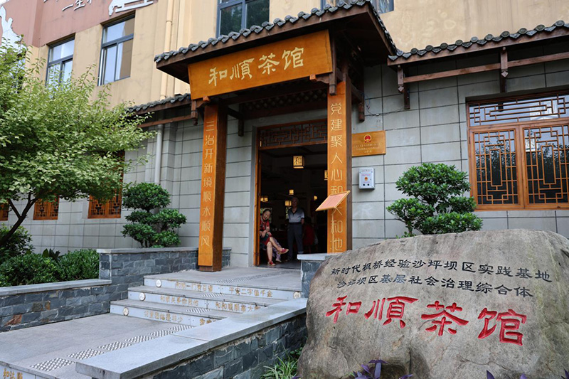 茶館在川渝地區(qū)是最常見的休閑去處,在重慶市沙坪壩區(qū)回龍壩鎮(zhèn)聚龍城社區(qū),一間非民辦“和順茶館”成為當?shù)匕傩盏男聦櫍撼撕炔枇奶欤桊^還融合了各職能部門下沉社區(qū)的十幾個辦公室功能。政策宣講、糾紛調(diào)解、法律咨詢……一杯清茶間,社區(qū)里那些難辦、急辦的事總能得到妥善解決。