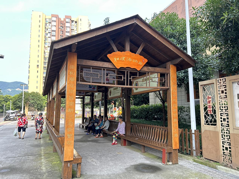 重慶市沙坪壩區(qū)回龍壩鎮(zhèn)聚龍城社區(qū)“和順茶館”是一間非民辦的多功能茶館:除了喝茶聊天,這里還融合了各職能部門(mén)下沉社區(qū)的十幾個(gè)辦公室功能,在這里每周定期為社區(qū)居民開(kāi)展技能培訓(xùn)、文化宣講、初心回顧,以及文娛表演等。一杯茶間,就為百姓提供了政策宣講、糾紛調(diào)解、法律咨詢(xún)等身邊服務(wù)。而且,這里還是百姓的“議事堂”“民意收集站”。