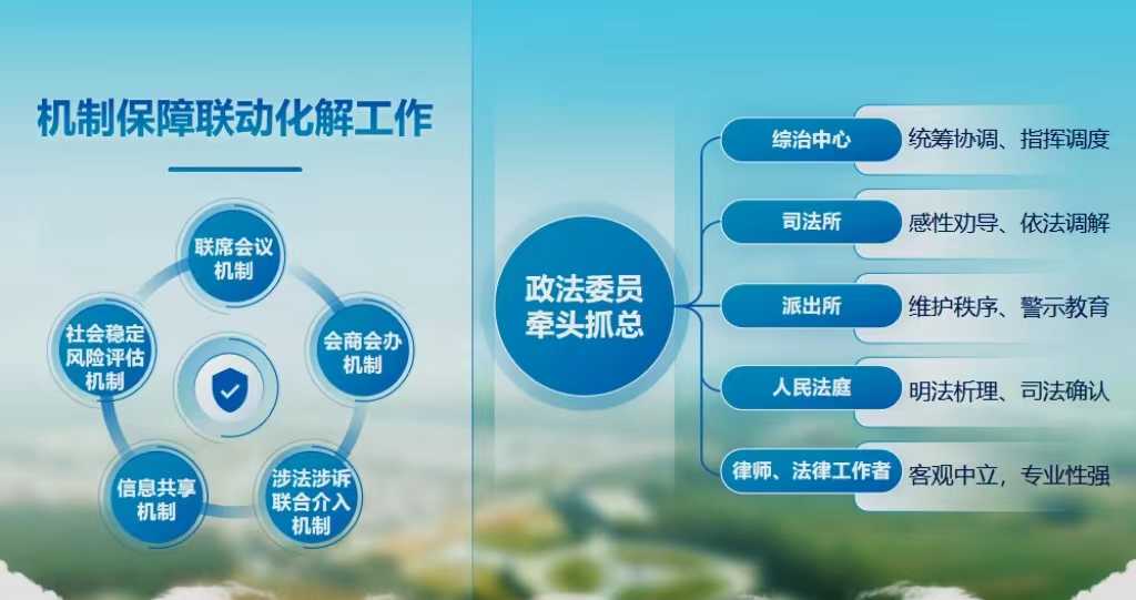“多調(diào)聯(lián)動(dòng)、‘三官一律’進(jìn)網(wǎng)格、警格網(wǎng)格融合、人民調(diào)解介入信訪、訴前調(diào)解”,多年來政法系統(tǒng)各部門依托網(wǎng)格化建設(shè)履行自身職能發(fā)揮各自優(yōu)勢(shì),或獨(dú)當(dāng)一面、或互相配合化解矛盾糾紛,探索實(shí)踐的各種工作做法取得了成效。