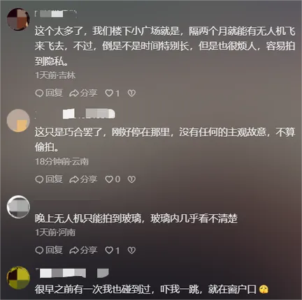 即使沒有拍到隱私畫面,無人機(jī)懸停窗外這一行為本身是否構(gòu)成侵權(quán)?多數(shù)網(wǎng)友認(rèn)為,家是最私密的場所,無人機(jī)貼近窗戶飛行打破了居民的心理安全防線,其行為本身就帶來了被窺視的恐懼感和心理不適。
