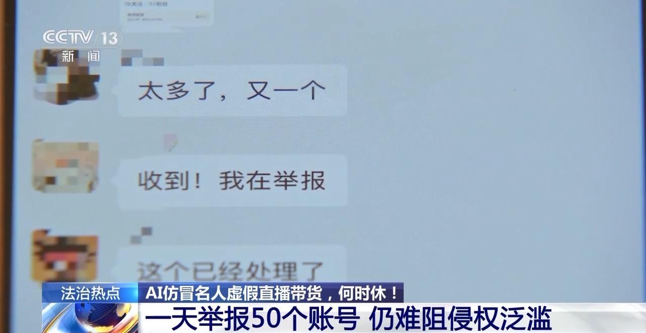 溫崢嶸團隊工作人員發(fā)現(xiàn)虛假視頻在網(wǎng)絡(luò)傳播后,便持續(xù)進行舉報,一天內(nèi)曾集中舉報50個假冒賬號,有的造假賬號被平臺下架處理,有的則剛下架就換個形式重新出現(xiàn),讓人防不勝防。對于這樣的情況,工作人員告訴記者,部分商家只需截取一段影像,用簡易工具就能生成虛假內(nèi)容,而他們?nèi)∽C卻要花費很大的精力。
