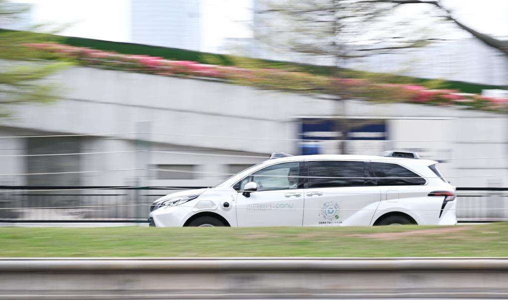 2025年3月11日,配備有安全員的自動駕駛示范運營專線出租車行駛在廣州塔附近道路上。新華社記者 鄧華 攝