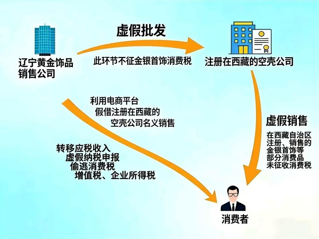 根據(jù)相關(guān)政策要求,西藏自治區(qū)對在本地注冊、銷售的金銀首飾等消費(fèi)品,暫未征收消費(fèi)稅。結(jié)合這個(gè)情況,稅務(wù)人員初步判斷潮尊公司“沈陽批發(fā)、西藏零售”的模式,存在轉(zhuǎn)移應(yīng)稅收入、偷逃消費(fèi)稅的嫌疑。