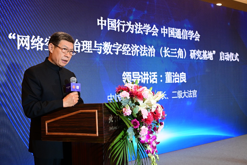 中國行為法學會會長董治良在致辭中指出,“網(wǎng)絡空間治理”和“數(shù)字經(jīng)濟法治”已是世界范圍內(nèi)的熱門關鍵詞之一。近年來,我國在網(wǎng)絡安全、數(shù)據(jù)安全領域立法取得了重大進展,尤其是網(wǎng)絡安全法、數(shù)據(jù)安全法、個人信息保護法的頒布施行,標志著我國網(wǎng)絡安全和數(shù)據(jù)保護的基礎性法律架構(gòu)已經(jīng)建立。相關的落實和細化基礎性法律的行政法規(guī)、地方性法規(guī)和政府規(guī)章還在制定過程中??梢哉f,我國數(shù)據(jù)安全保障能力在不斷提升,數(shù)據(jù)開發(fā)利用和產(chǎn)業(yè)發(fā)展得到法律的支持和保障,我國數(shù)據(jù)潛力即將得以極大釋放,產(chǎn)出巨量的經(jīng)濟成果。在這樣的大背景下,我們啟動成立“網(wǎng)絡空間治理與數(shù)字經(jīng)濟法治(長三角)研究基地”,以加強網(wǎng)絡治理與數(shù)字法治理論和實踐問題研究,可謂恰逢其時,意義重大。希望研究基地圍繞黨中央決策部署和國家戰(zhàn)略規(guī)劃,準確對標新時代的新要求,聚合國內(nèi)外優(yōu)勢科研力量,加強數(shù)字治理、數(shù)據(jù)確權(quán)、數(shù)據(jù)共享、數(shù)據(jù)開放、數(shù)字政府等領域的理論研究,撰寫高層次專題報告,努力形成一批有辨識度、有影響力又實效管用的數(shù)字法治研究成果,把研究基地辦成覆蓋長三角地區(qū)、服務全國的網(wǎng)絡治理與數(shù)字經(jīng)濟法治高端專業(yè)智庫。