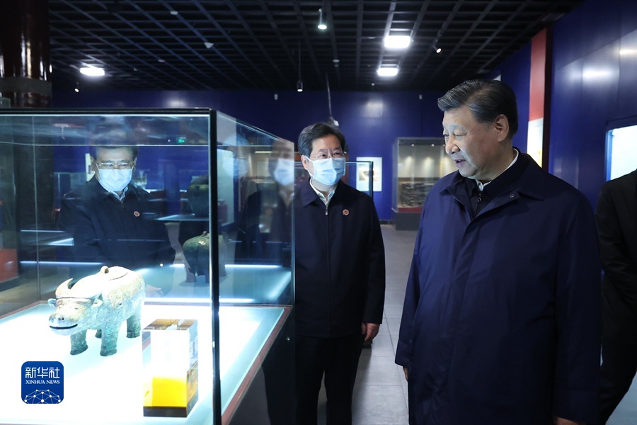 10月26日至28日,中共中央總書記、國家主席、中央軍委主席習(xí)近平在陜西省延安市、河南省安陽市考察。這是28日下午,習(xí)近平在安陽市殷墟博物館考察。 新華社記者 鞠鵬 攝