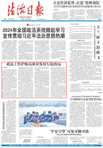 2024年1月,習(xí)近平總書記對(duì)政法工作作出重要指示強(qiáng)調(diào),堅(jiān)持黨的絕對(duì)領(lǐng)導(dǎo),忠誠(chéng)履職、擔(dān)當(dāng)作為,以政法工作現(xiàn)代化支撐和服務(wù)中國(guó)式現(xiàn)代化,為全面推進(jìn)強(qiáng)國(guó)建設(shè)、民族復(fù)興偉業(yè)提供堅(jiān)強(qiáng)安全保障。一年來,各級(jí)政法機(jī)關(guān)堅(jiān)持以習(xí)近平新時(shí)代中國(guó)特色社會(huì)主義思想為指導(dǎo),深入貫徹落實(shí)習(xí)近平法治思想和總體國(guó)家安全觀,把習(xí)近平總書記的重要指示精神轉(zhuǎn)化為建設(shè)更高水平平安中國(guó)、法治中國(guó)的實(shí)際行動(dòng),護(hù)航高質(zhì)量發(fā)展行穩(wěn)致遠(yuǎn)。