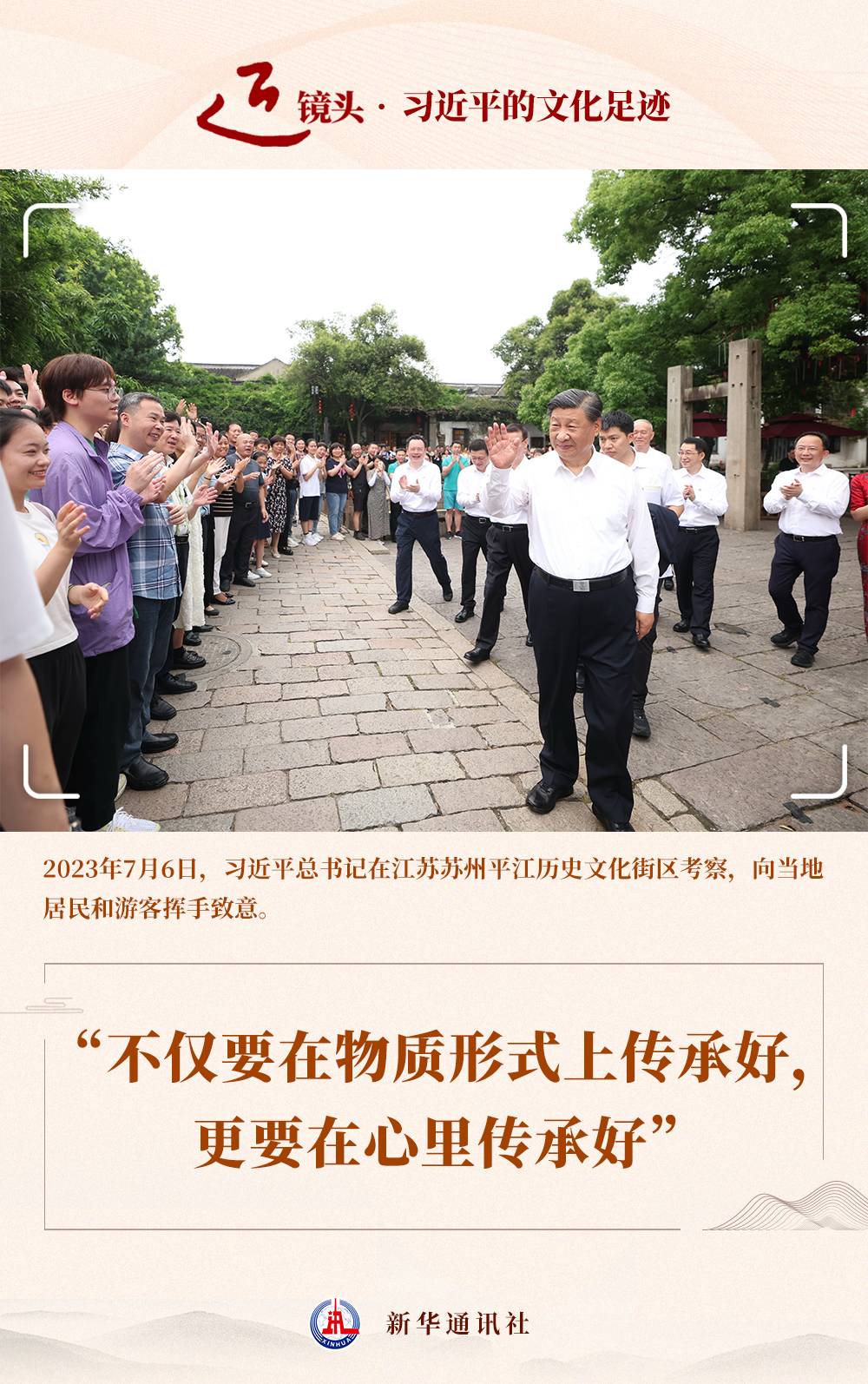 這次考察中,總書記深情囑托:“平江歷史文化街區(qū)是傳承弘揚(yáng)中華優(yōu)秀傳統(tǒng)文化、加強(qiáng)社會(huì)主義精神文明建設(shè)的寶貴財(cái)富,要保護(hù)好、挖掘好、運(yùn)用好,不僅要在物質(zhì)形式上傳承好,更要在心里傳承好。”