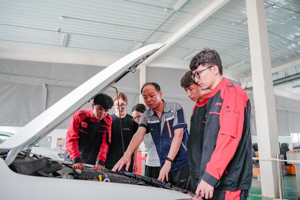 2025年6月27日,在新疆和田技師學院,援疆教師李寶(中)和當?shù)亟處熞煌笇W生維修汽車。該校是北京市對口援疆幫扶單位之一,2020年以來,北京市向該校派出3批次累計30人次的援疆教師隊伍,他們在參與學校管理、承擔教學任務的基礎上,還主動開展“傳幫帶”培養(yǎng)當?shù)亟處煟e極組織和指導學生參與各類技能競賽,為當?shù)芈殬I(yè)技術教育高質量發(fā)展貢獻力量。