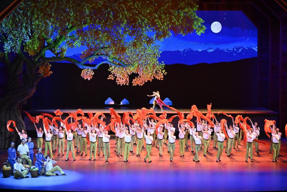演出共3個篇章,展現(xiàn)新疆社會主義建設(shè)的火熱場景,表現(xiàn)改革開放給新疆帶來的蓬勃生機,描繪新疆各族兒女同心筑夢新時代的美好圖景。