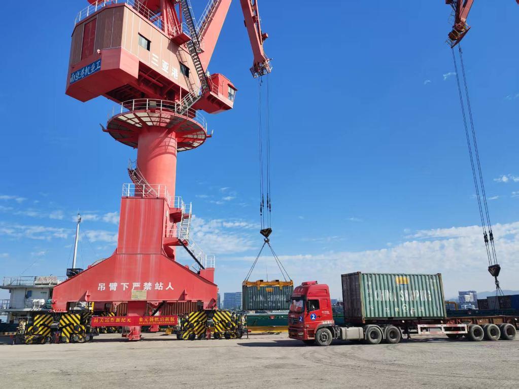 12月18日,三亞港“二線口岸”南山港區(qū)海關查驗場,第一批出島貨物順利通關。新華社記者 劉博 攝