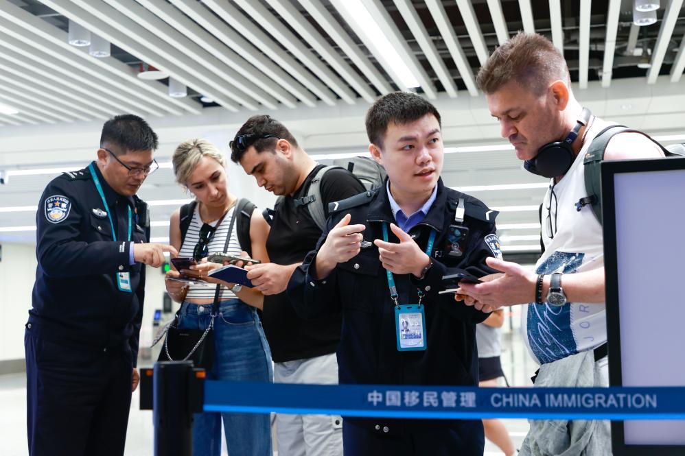 12月18日,??诿捞m邊檢站民輔警為入境旅客服務。新華社發(fā) (孫浩戎 攝)