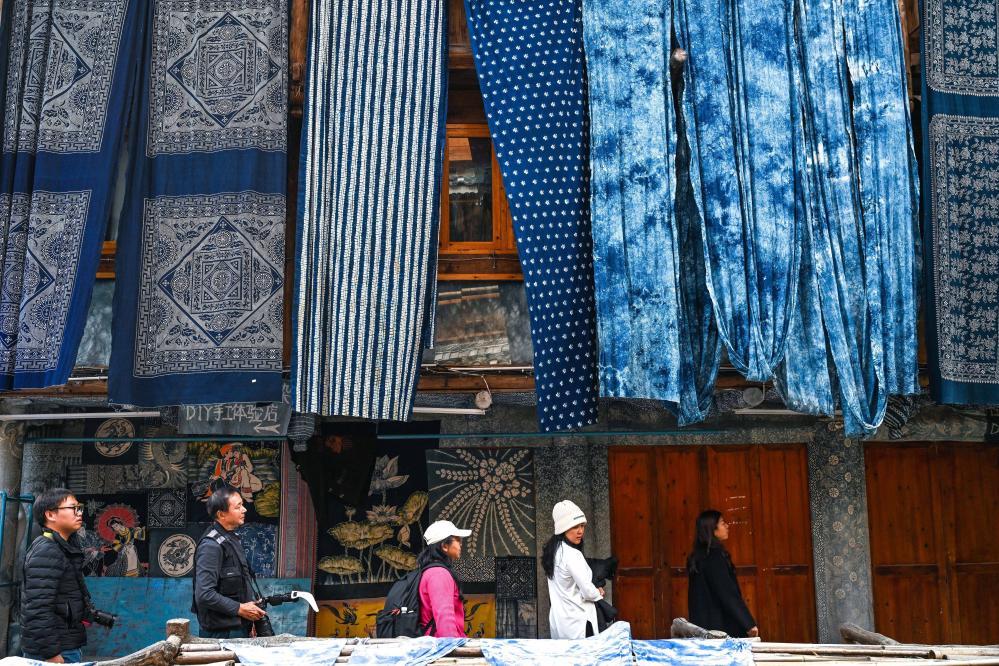 年關(guān)將至,侗寨游人如織。不少游客到侗品源靛染文化體驗(yàn)館,了解傳統(tǒng)非遺,體驗(yàn)靛染工藝,選購民族文化商品。