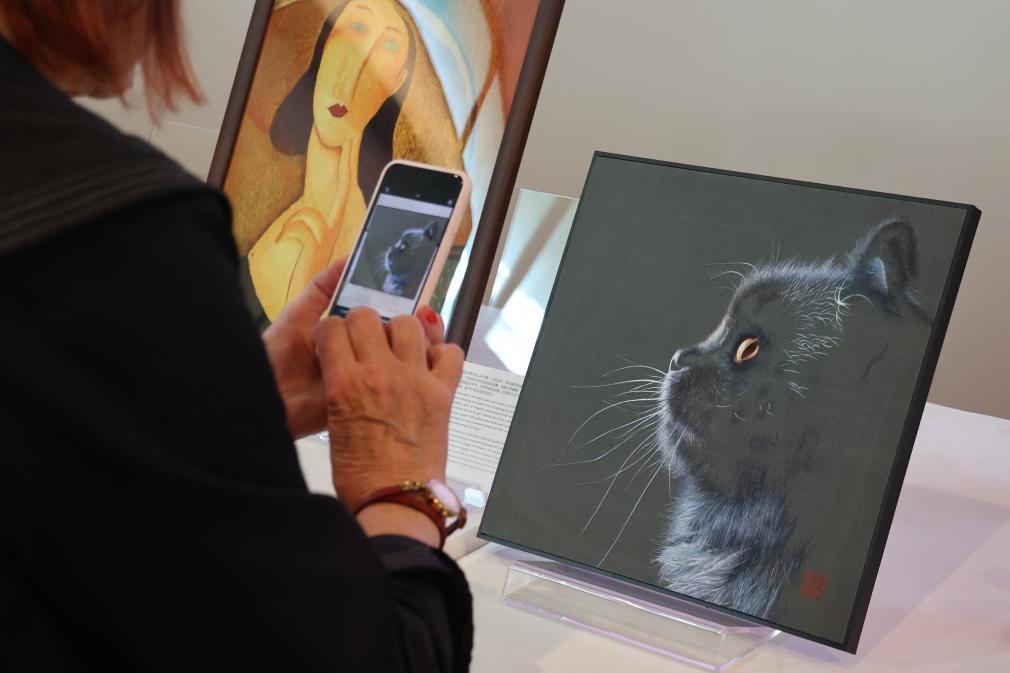 2025年9月4日,觀眾在法國巴黎中國文化中心參觀《一針不多一針不少的蘇繡》主題展時(shí)拍照留念。新華社記者 張百慧 攝