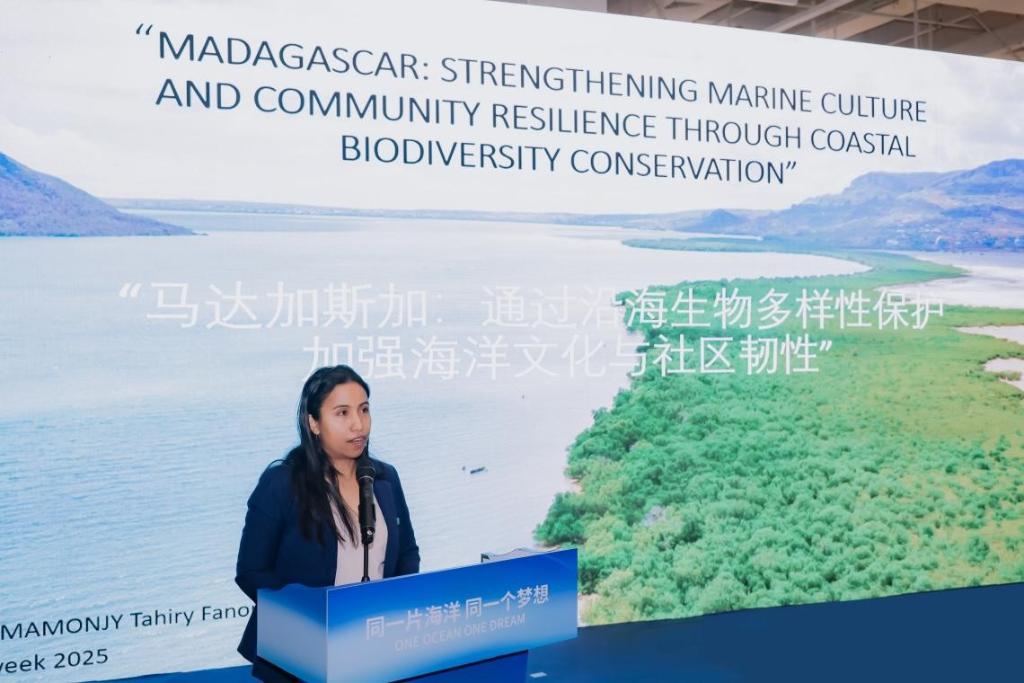 2025年10月29日,馬達(dá)加斯加環(huán)境與可持續(xù)發(fā)展部官員塔希里·拉庫圖馬蒙吉在2025中國海洋經(jīng)濟(jì)博覽會活動中發(fā)言。(國際紅樹林中心供圖)