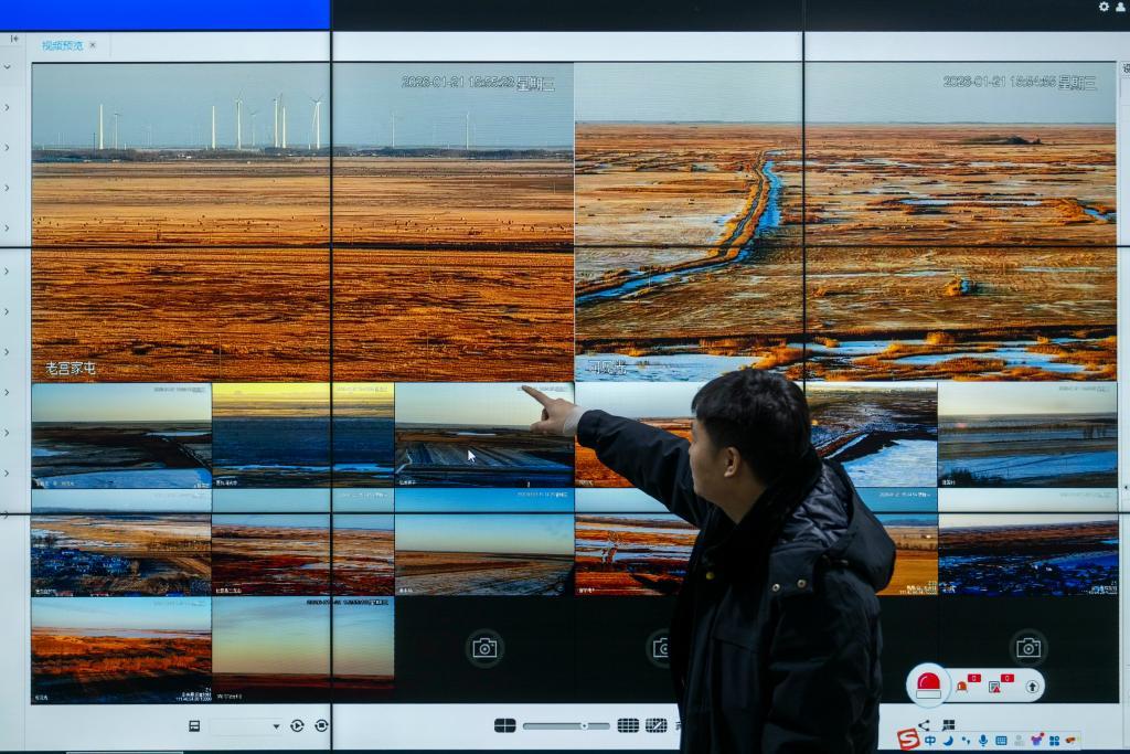 2026年1月21日,黑龍江省扎龍國家級自然保護(hù)區(qū)管理局監(jiān)控中心。新華社記者 張濤 攝