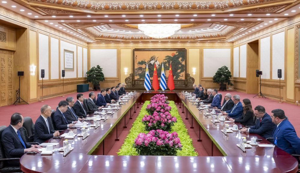 習近平指出,當今世界正處于百年未有之大變局,國際形勢變亂交織,單邊霸凌愈演愈烈,中方支持烏拉圭接任“77國集團和中國”輪值主席國,愿與烏方加強全球南方團結協(xié)作,共同推進平等有序的世界多極化、普惠包容的經(jīng)濟全球化,攜手并進、共謀發(fā)展,為構建人類命運共同體作出更大貢獻。中方始終重視中拉關系,支持拉美和加勒比國家維護自身主權、安全、發(fā)展利益,支持烏拉圭接任拉美和加勒比國家共同體以及南方共同市場輪值主席國,愿同烏方和地區(qū)國家推動共建中拉命運共同體走深走實。