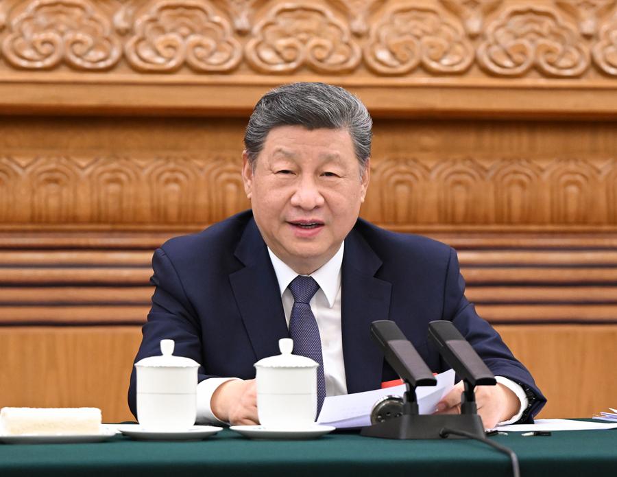 3月5日下午,中共中央總書記、國家主席、中央軍委主席習近平參加他所在的十四屆全國人大四次會議江蘇代表團審議。