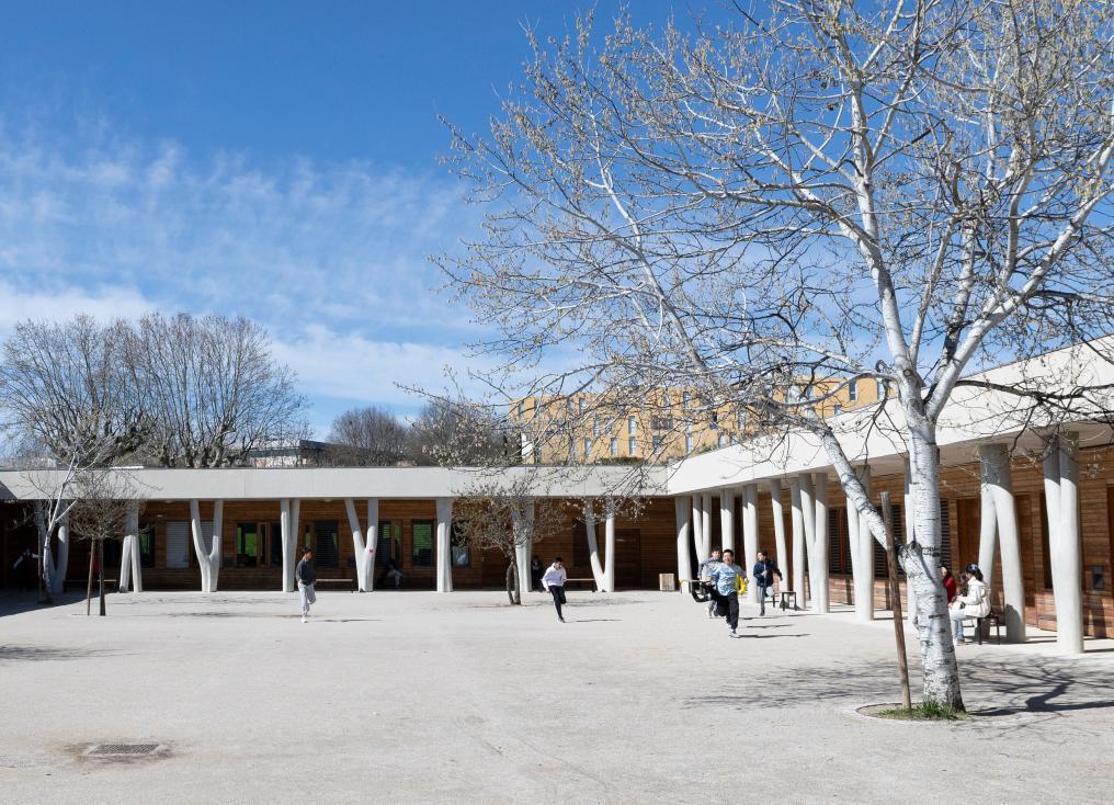 3月12日,在法國馬諾斯克,普羅旺斯-阿爾卑斯-藍(lán)色海岸大區(qū)國際學(xué)校學(xué)生在校園內(nèi)玩耍。新華社記者 鄔惠我 攝