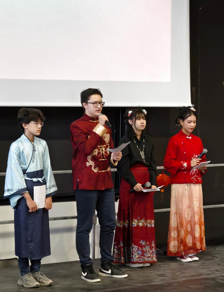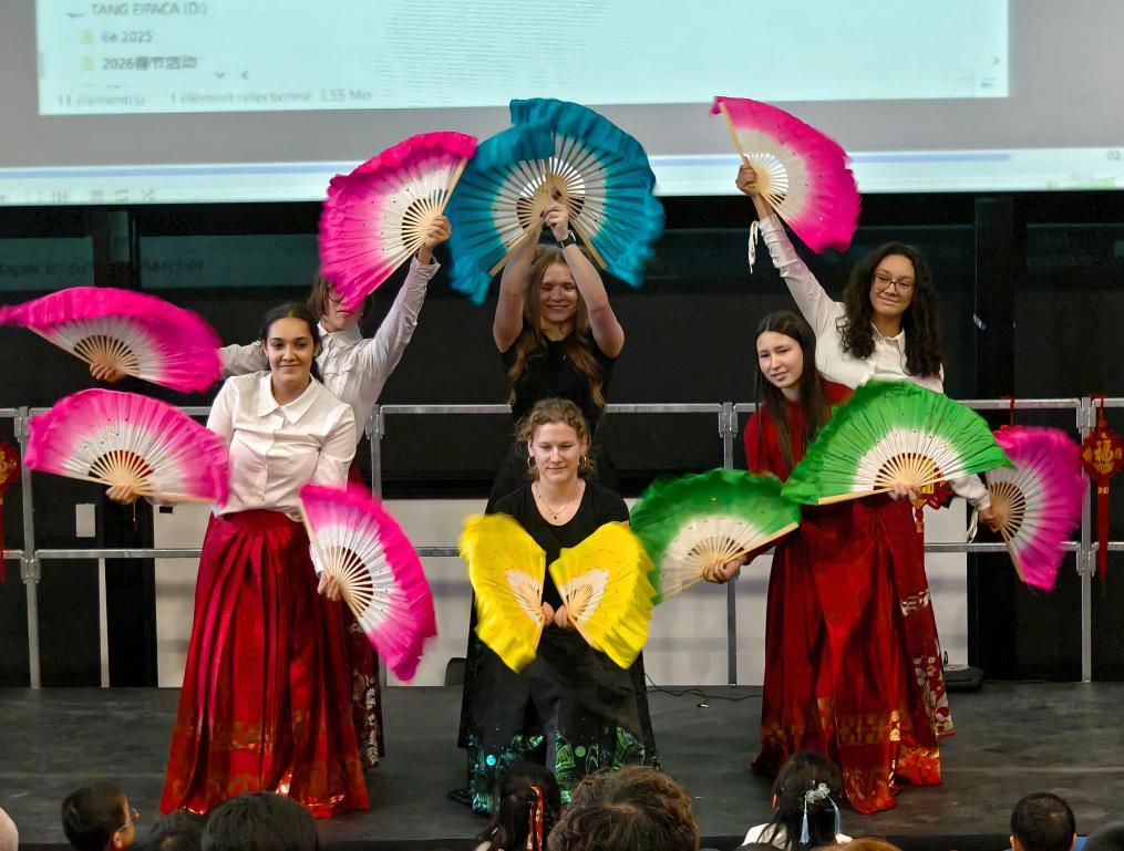2月5日,在法國馬諾斯克,普羅旺斯-阿爾卑斯-藍(lán)色海岸大區(qū)國際學(xué)校學(xué)生在春節(jié)活動上表演。新華社發(fā)(普羅旺斯-阿爾卑斯-藍(lán)色海岸大區(qū)國際學(xué)校供圖)
