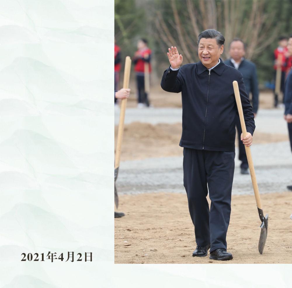 這是習(xí)近平總書記同大家一起植樹。