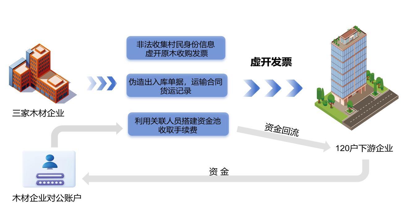 至此,在專案組的全方位徹查下,涼山布拖縣3戶企業(yè)實為“道具工廠”徹底現(xiàn)形:以劉楊、公大偉為首的犯罪團伙,通過設(shè)立3戶木業(yè)公司,以用工為名,非法收集村民身份信息,為自己虛開原木收購發(fā)票;同時通過購買二手設(shè)備、臨時雇傭人員等手段營造生產(chǎn)假象,為他人虛開板材類增值稅專用發(fā)票。