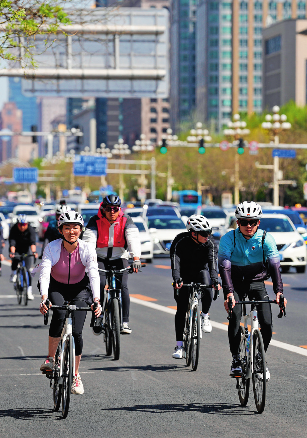 騎行愛(ài)好者在北京長(zhǎng)安街上騎行(資料照片) 鞠煥宗攝/本刊