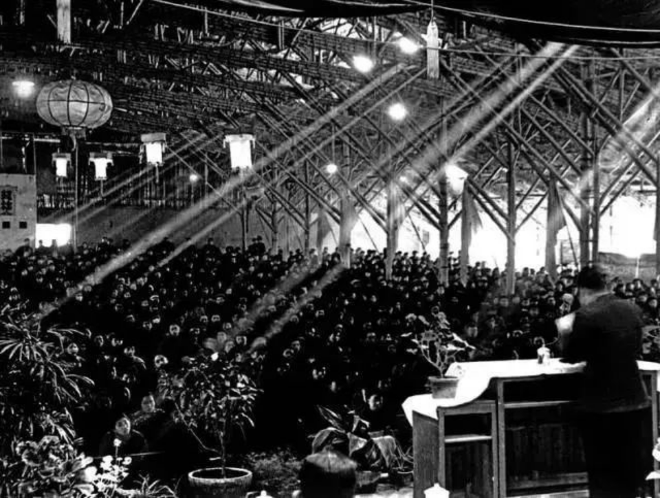 用竹篾草棚搭建的臨時大禮堂(圖片來源:西安交通大學(xué)新聞網(wǎng))