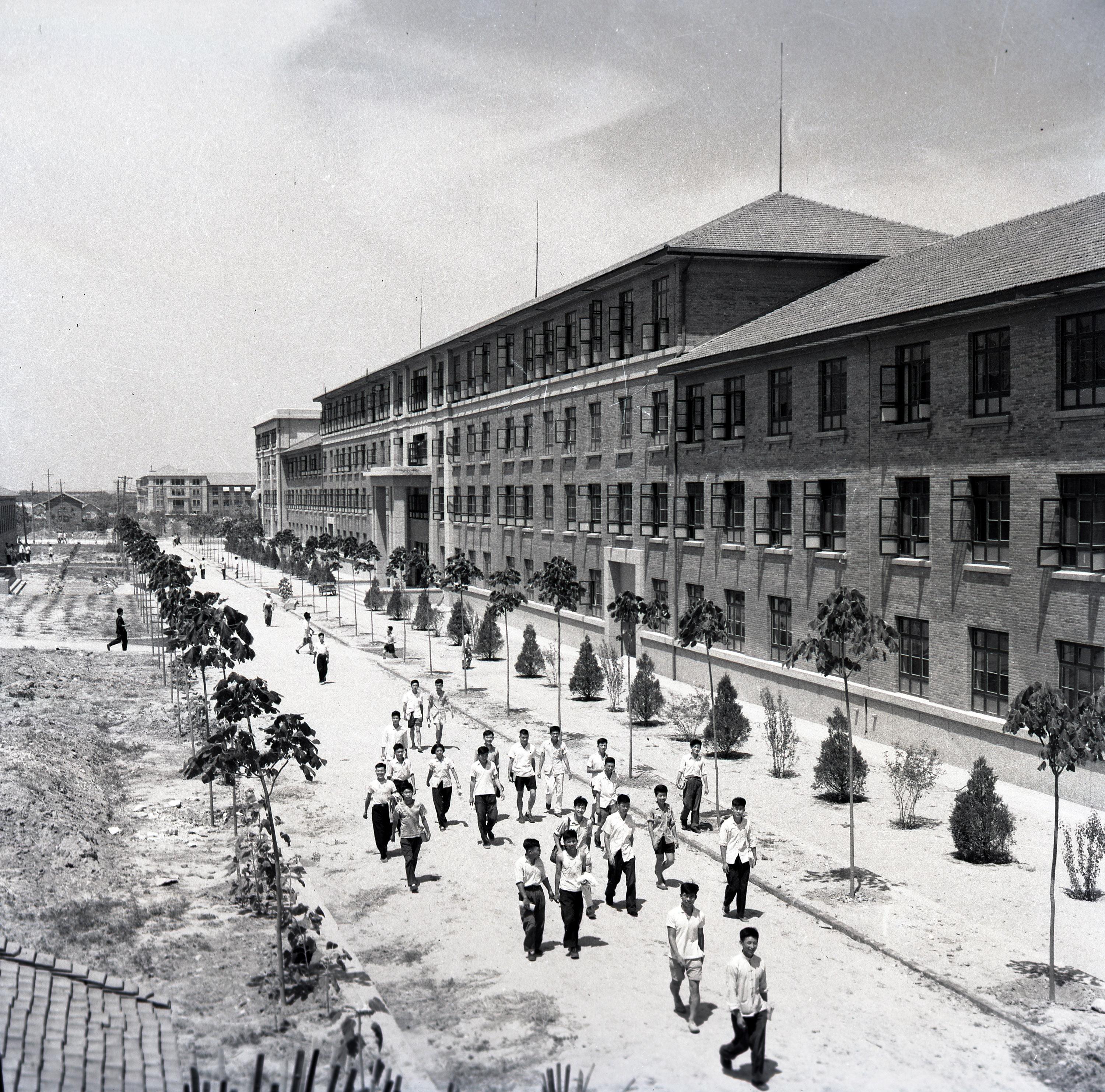 遷校之初,馬路不平、電燈不明、電話不靈;用水緊張,洗臉?biāo)玫焦さ厣先ザ?;冬天,教室僅靠一個小爐子取暖……盡管如此,師生們卻精神飽滿,干勁十足。