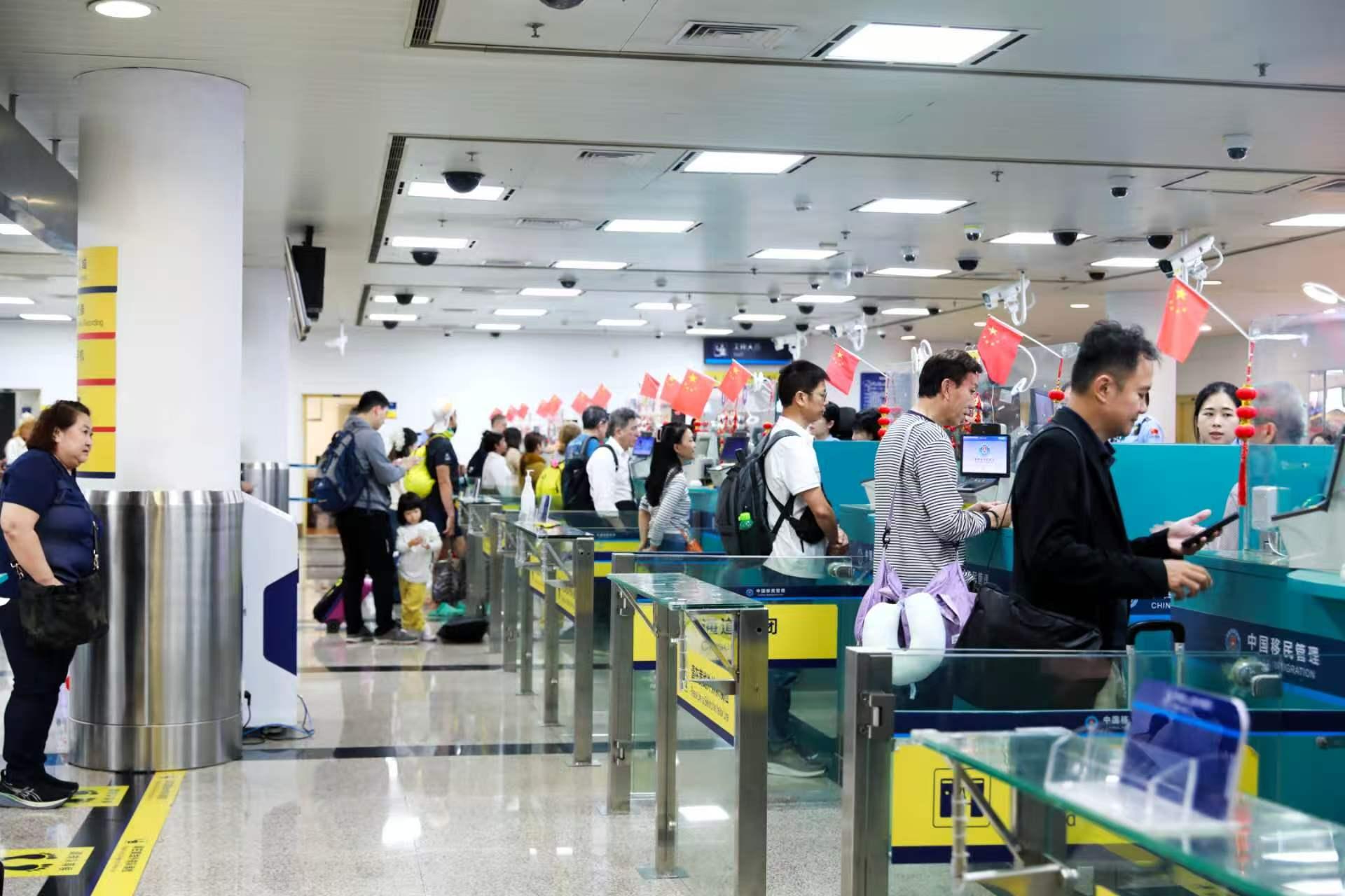 圖為高崎國際機(jī)場,高崎邊檢站移民管理警察正在進(jìn)行旅客驗放 馬聞萱 攝