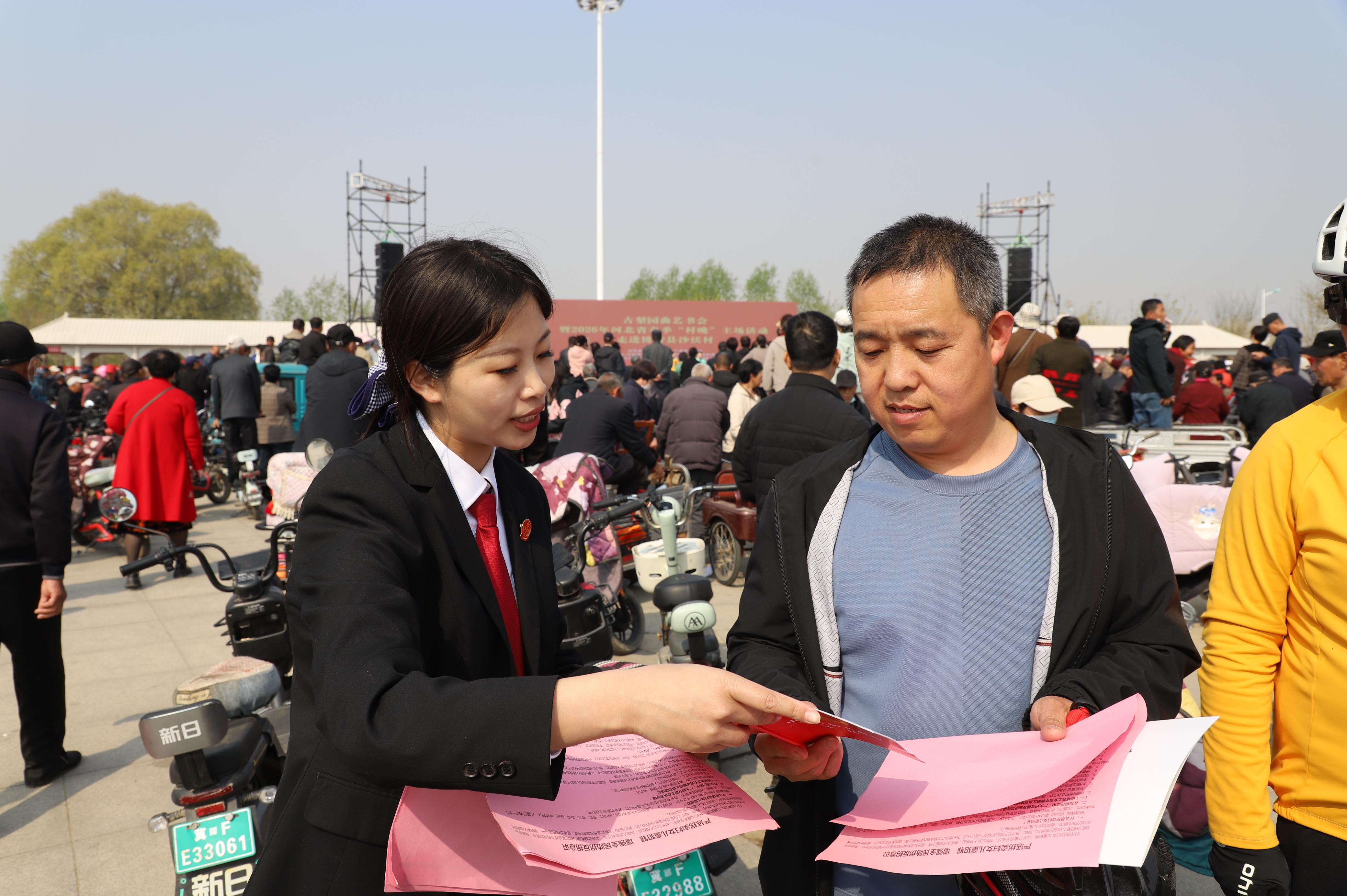 4月8日,2026年河北省保定市博野縣鄉(xiāng)村生態(tài)游啟動(dòng)儀式在沙沃村茂蘭廣場(chǎng)舉行。博野縣人民法院組織青年干警走進(jìn)梨花節(jié)現(xiàn)場(chǎng),開(kāi)展“普法進(jìn)梨園 法治潤(rùn)心田”主題宣傳活動(dòng),讓法治理念伴著春日梨花香,走進(jìn)群眾生活、浸潤(rùn)百姓心田。