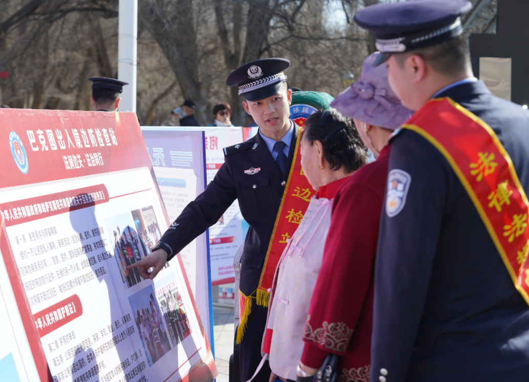 4月8日,新疆出入境邊防檢查總站巴克圖出入境邊防檢查站以“法治護航邊疆 同心守護國門”為主題,創(chuàng)新普法形式,在塔城市文化廣場開展沉浸式普法宣傳活動。民警精心設置模型驗訖章、模型界碑、普法打卡點等特色展示區(qū),通過實物講解、互動問答、案例剖析等方式,向過往群眾解讀相關法律法規(guī),生動闡釋國界管理、出入境規(guī)范、邊境禁限行為等知識,引導群眾增強國家意識、國土意識和法治觀念。